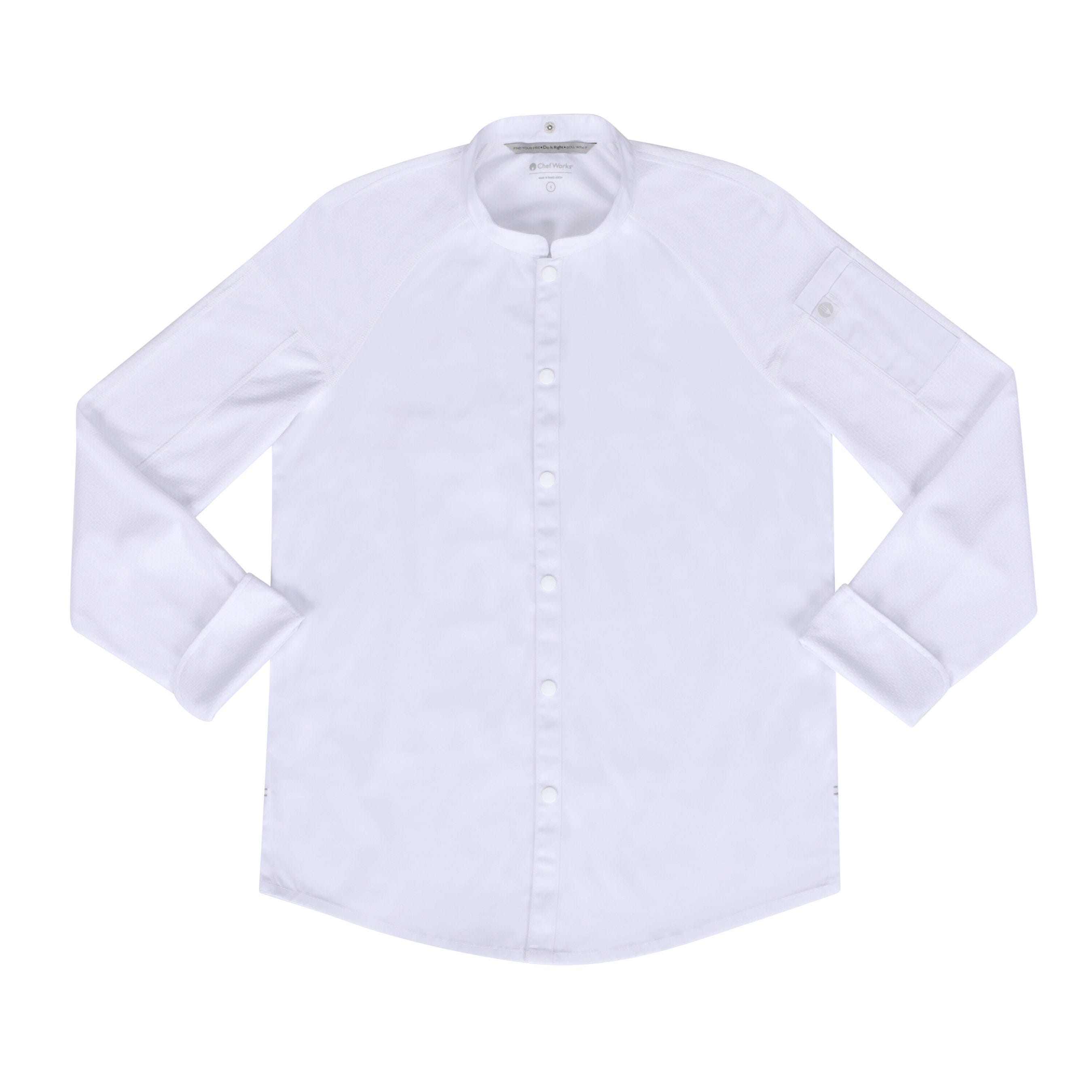 Ультрасовременный и лаконичный «городской» дизайн этого жакета покорит вас с первого взгляда. Элементы спортивного стиля – свободный рукав реглан и фигурная кокетка на спинке – выполненные из охлаждающего трикотажа Cool Vent™, создают максимально комфортную посадку и дарят полную свободу движения во время работы. Длину рукавов удобно регулировать, вам нужно просто подвернуть манжеты на нужную высоту. Жакет застёгивается на шесть металлических кнопок в тон ткани. На левом рукаве расположен кармашек для термометра. Рубашечный подол, объёмная пата на вороте и усиленные двойные швы подчёркивают образ профессионала, идущего в ногу со временем.