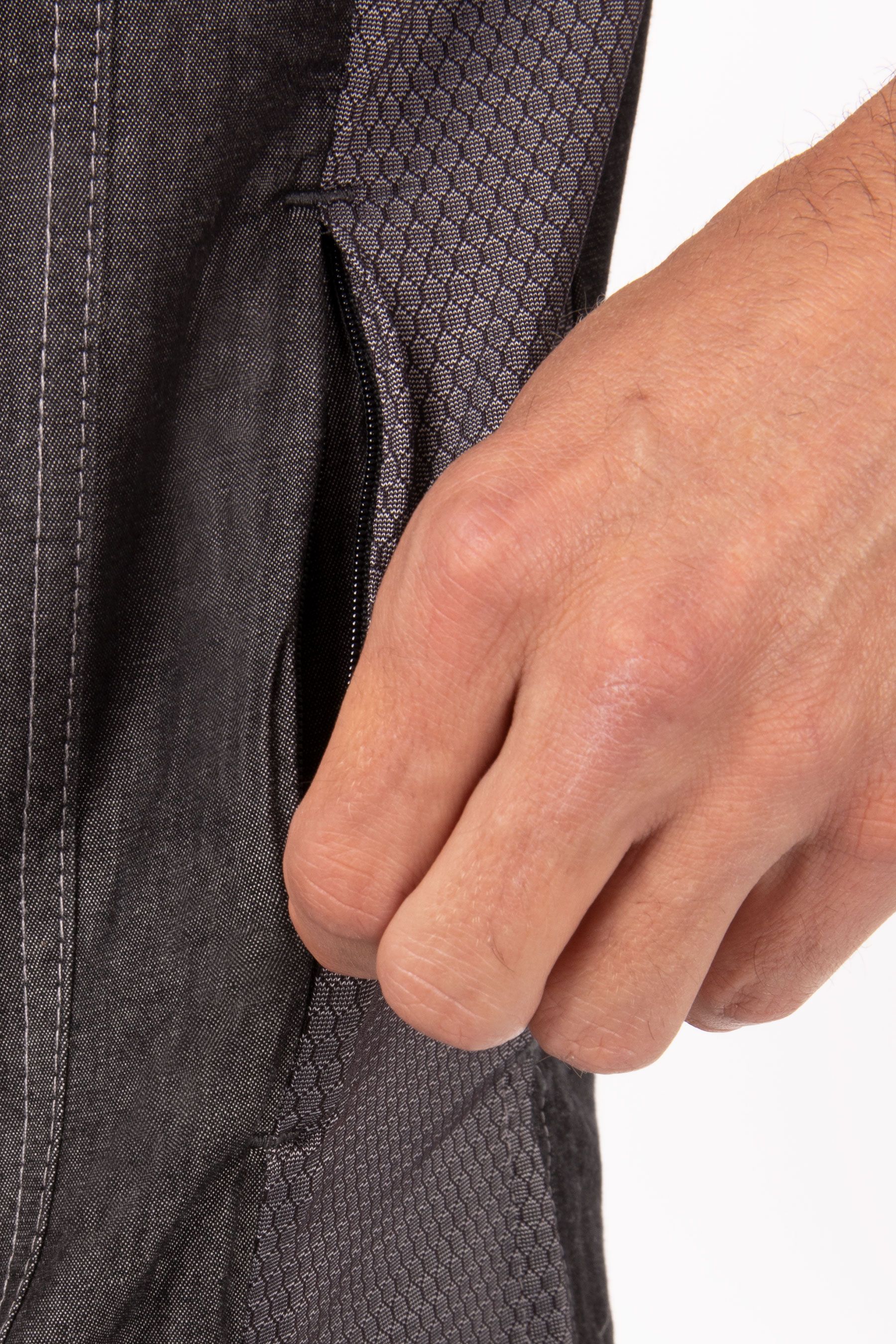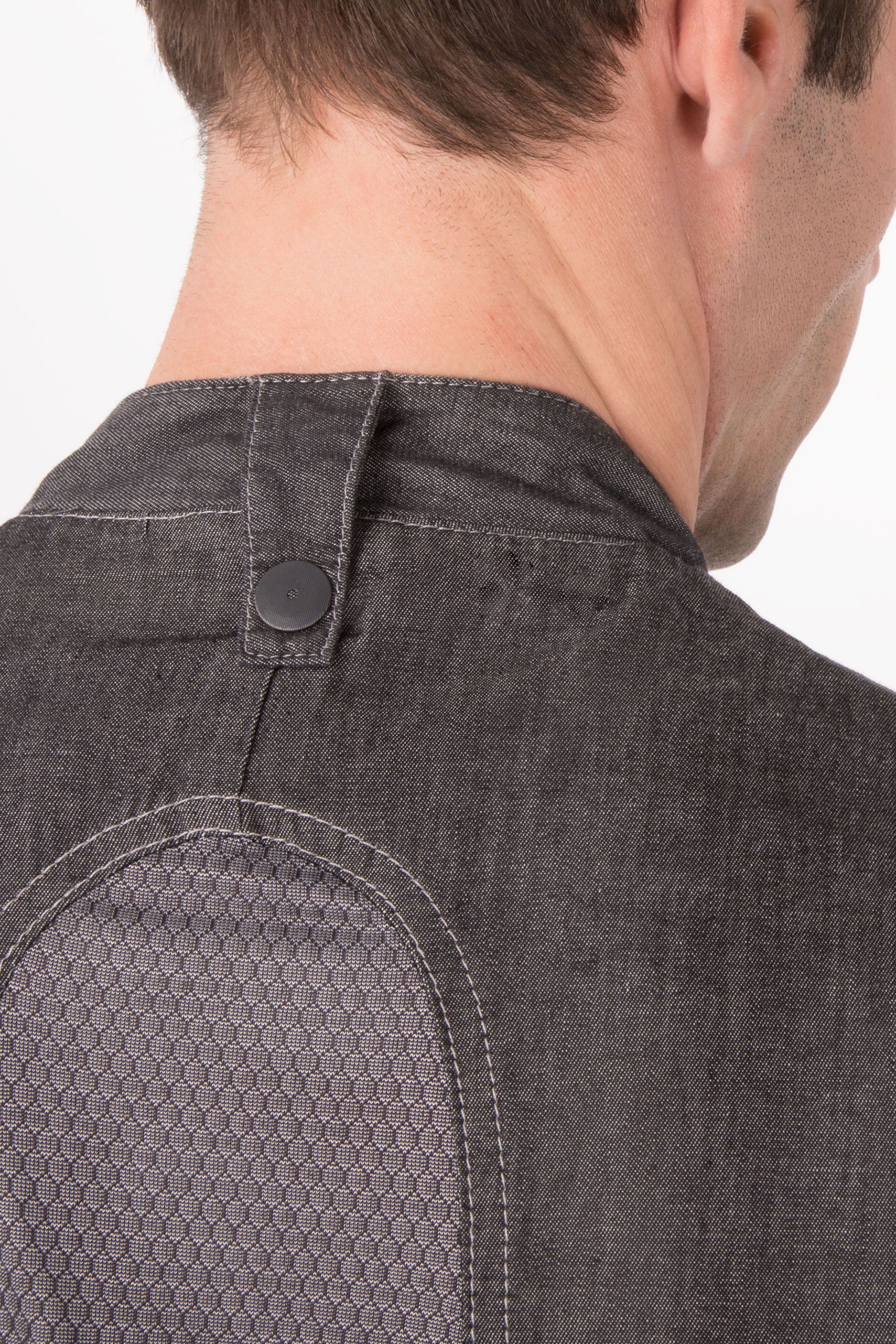 Стильная эклектика – китель Tribeca входит в линейку Executive ("представительский", англ.) и имеет исключительно яркий креативный дизайн. Полуприлегающий крой модели и вертикальные рельефные швы на полочках и спинке делают силуэт элегантным и стройным. Стретчевые сетчатые детали вдоль боковых срезов и вдоль спинки, более светлые, чем основной тон материала, также формируют стройную вертикаль и служат выразительными штрихами к "экспедиционному" колориту модели. Пата для закрепления фартука, нарукавные карманы тоже отсылают к стилю сафари, а вот металлические кнопки, карманы на молниях и воротник-стойка заимствованы из спортивного арсенала. Контрастная джинсовая строчка акцентирует контуры деталей и довершает энергичный, заряженный дизайнерской фантазией образ.