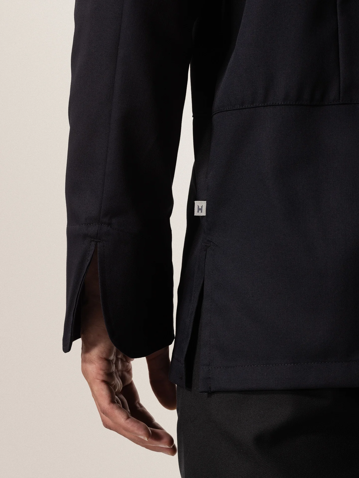 Жакет выполнен из технологичного поликоттона со структурой «механический стретч». Такая ткань прекрасно противостоит деформации: как только натяжение прекращается, она мгновенно восстанавливает первоначальную форму. Другим ее качеством является способность к терморегуляции. В одежде из такого материала не бывает жарко и душно – что особенно важно для спортивной и профессиональной одежды. Материал практичен, очень прочен и долговечен.