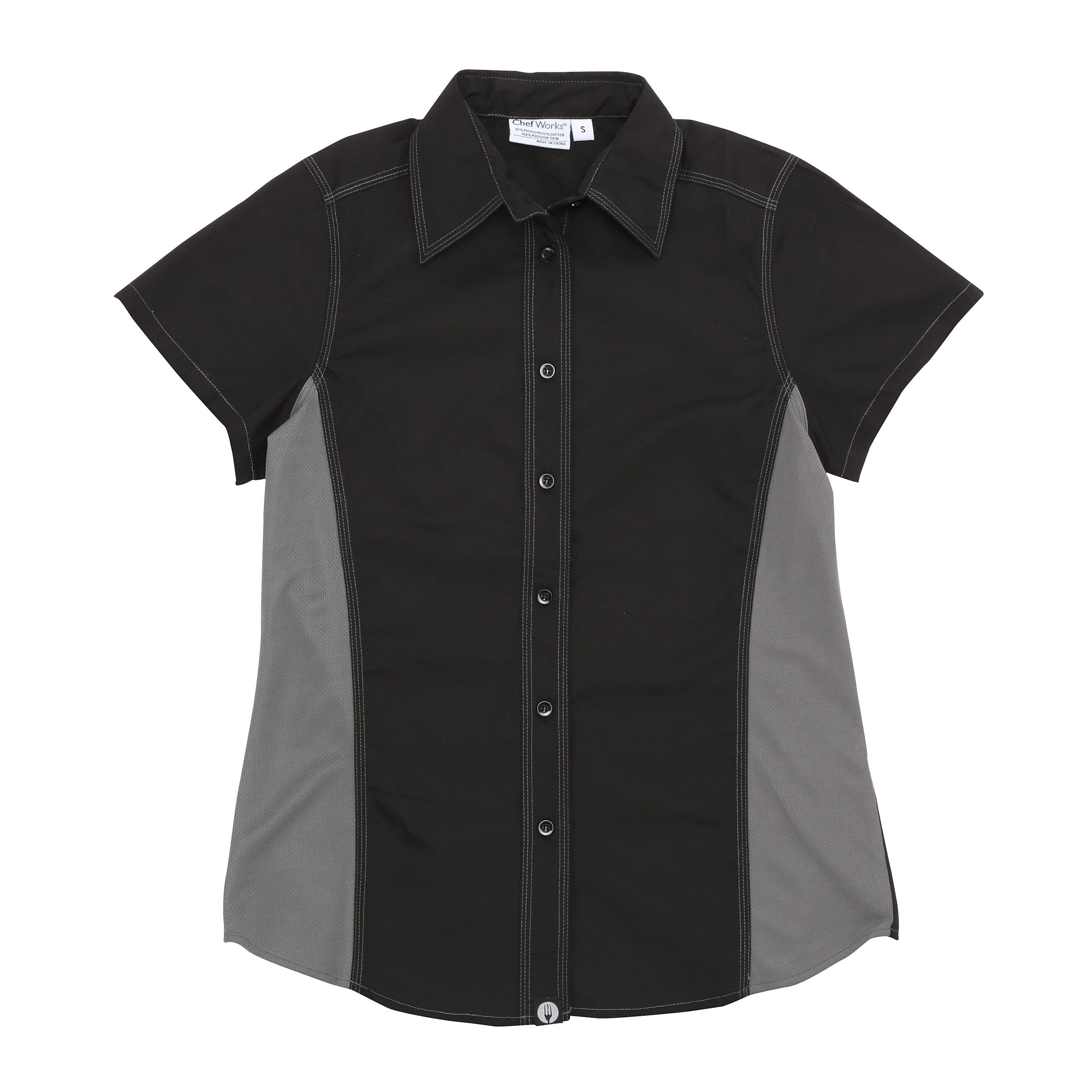 Изысканная модель прилегающего кроя с коротким рукавом из легкой и комфортной ткани. Вдоль боковых срезов сделаны вставки из контрастной ткани с охлаждающим эффектом Cool Vent™. Контуры деталей эффектно выделены тройной контрастной строчкой.