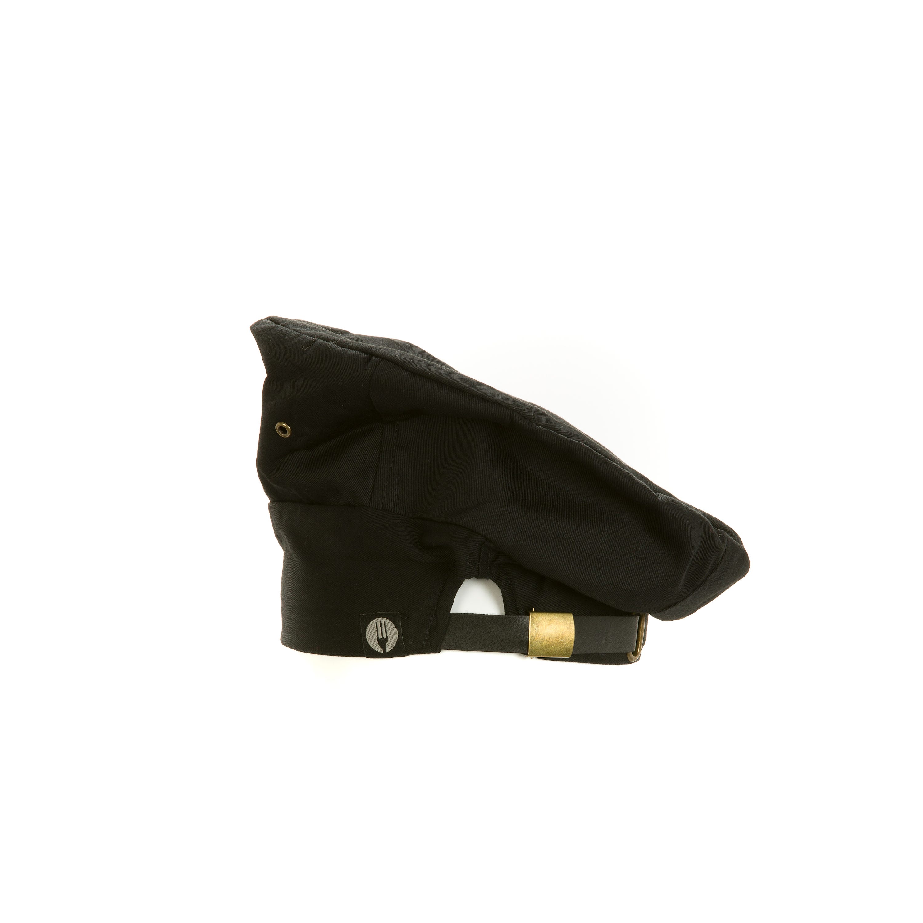 Поварской колпак из мягкого технологичного хлопково-полиэстерового бленда, с вентиляционными отверстиями, оформленными в виде металлических люверсов. Объем регулируется с помощью застежки со складным замком.