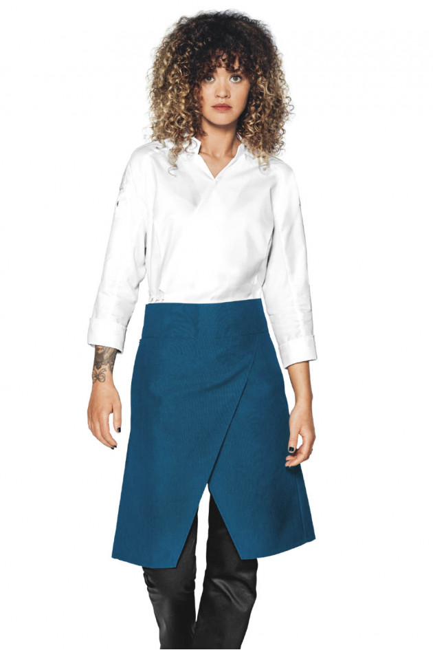 Полотно спереди разрезанно и перекрывается внахлёст - это оригинальная и очень удобная конструкция, она позволяет вам двигаться максимально комфортно. Дополняют функционал два глубоких и вместительных кармана.