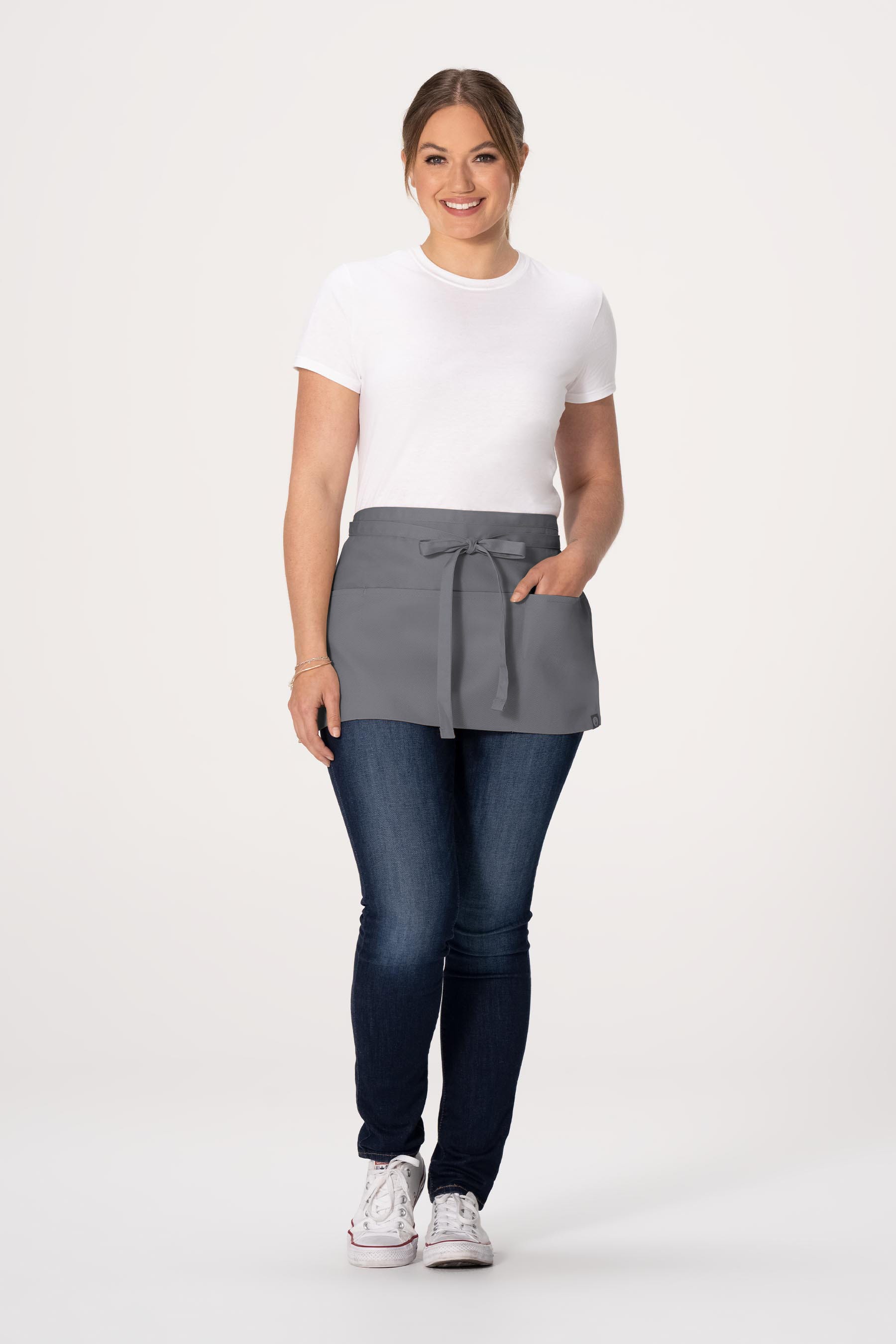 Присутствие синтетического волокна делает материал почти не мнущимся; кроме того, хорошие водоотталкивающие свойства полиэстера предотвращают появление пятен – так что фартук будет аккуратно выглядеть даже в конце трудной рабочей смены. Смешанный состав делает ткань долговечной и устойчивой к деформациям - она не растягивается в процессе эксплуатации и не дает усадку при стирке, не выцветает со временем.