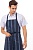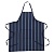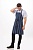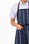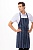Фартук с нагрудником из набивной ткани в вертикальную полоску, с контрастным черным поясом и шейным ремешком. Длина ремешка регулируется пряжками. Уголки карманов укреплены заклепками; места повышенных нагрузок усилены. Вертикальные линии создают стройный силуэт. Карман пристрочен с совпадением рисунка.