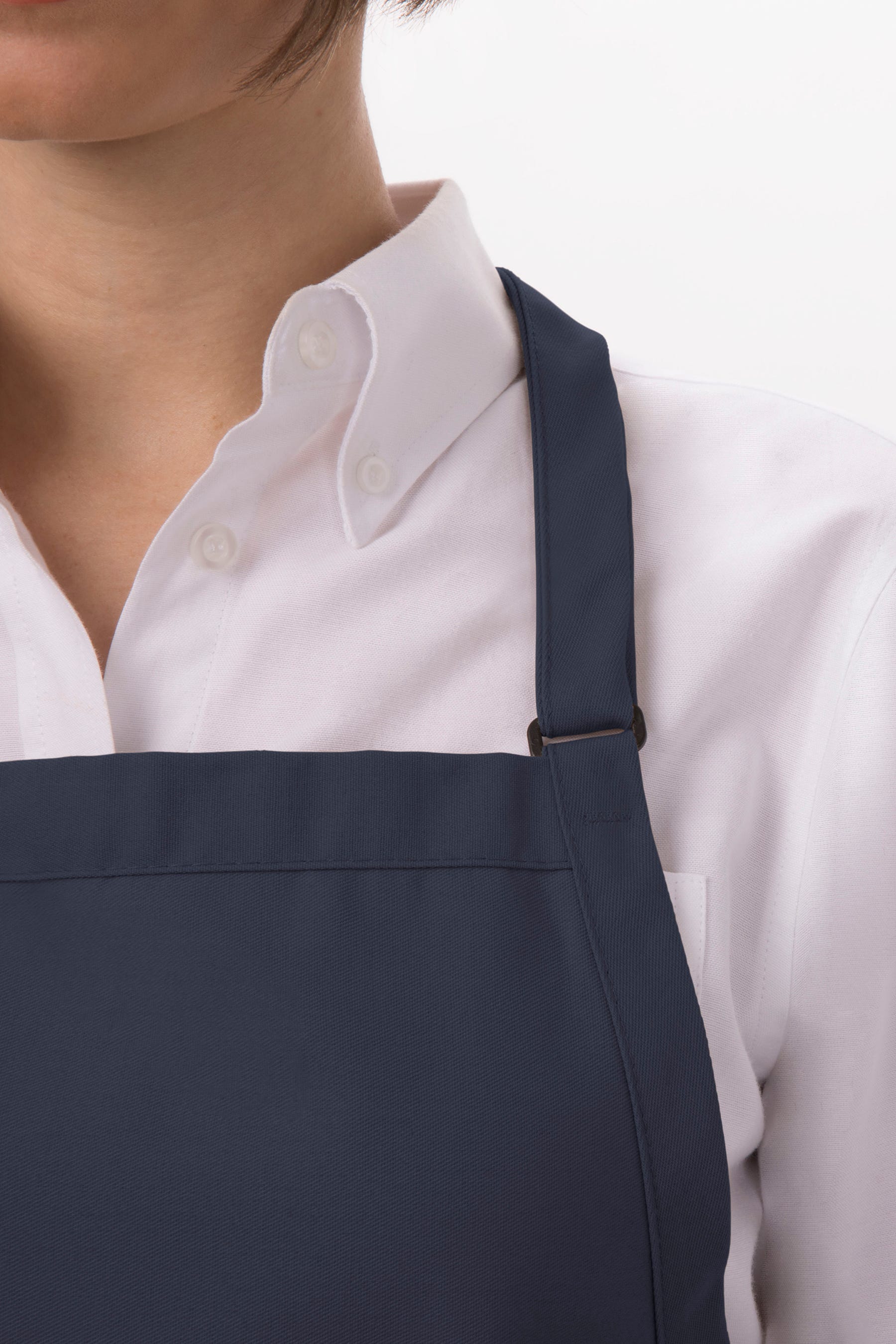 Фартук имеет удобные накладные карманы, достаточно вместительными для того, чтобы носить при себе мобильный гаджет габаритов iPad2. Длина шейного ремешка регулируется с помощью пряжки.