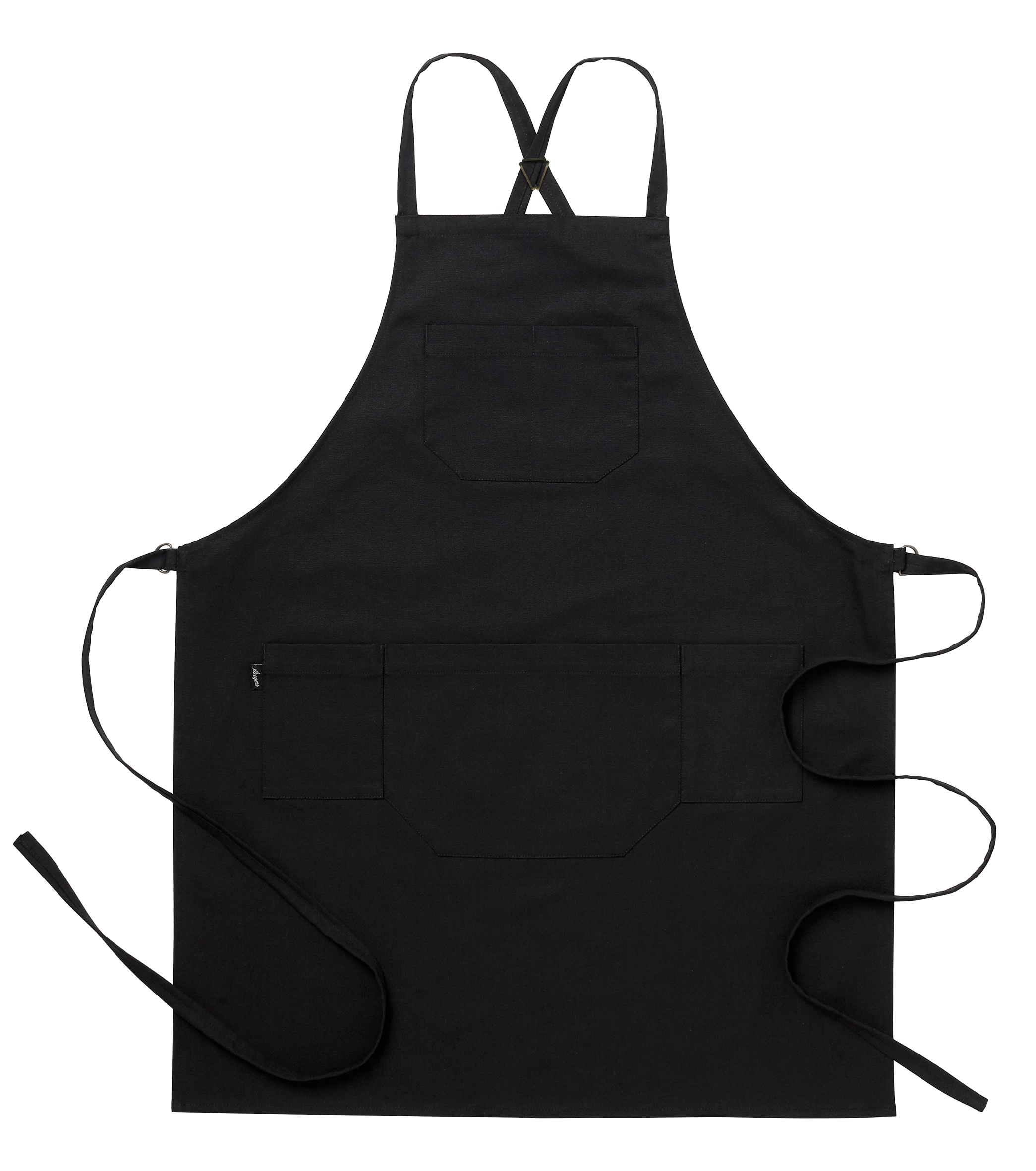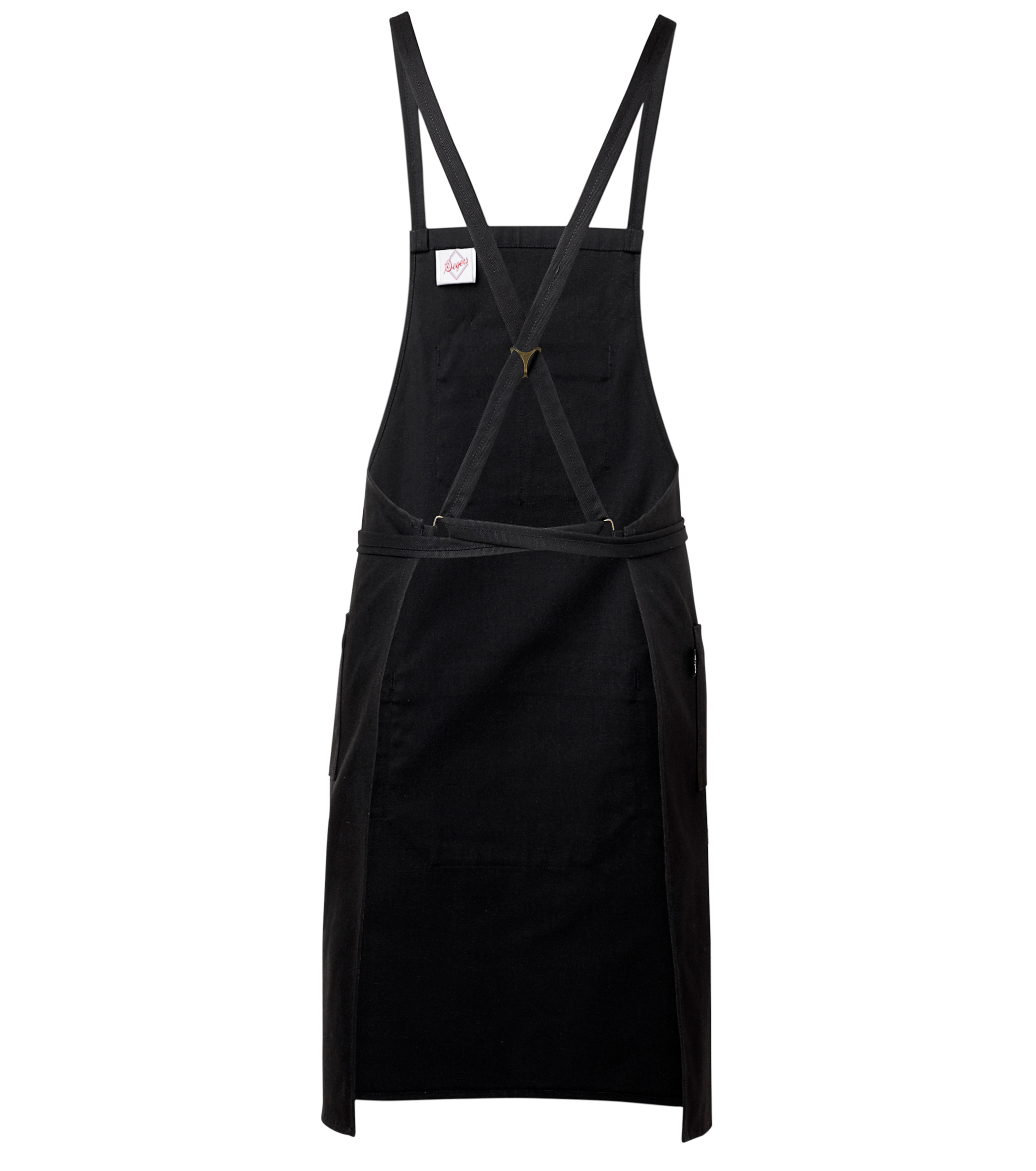 Крутой современный фартук с грудкой. Размер: примерно 75 х 90 см. Длинные бретельки перекрещиваются за спиной и продеваются в D-образные кольца по бокам изделия. Таким образом ослабляя или затягивая пояс вы сможете управлять посадкой фартука. Металлические элементы медного оттенка стильно гармонируют с фактурой и расцветкой материалов. Нагрудный карман состоит из двух отделений, а центральный из трёх. Кармашек справа украшен контрастным флажком с логотипом бренда.