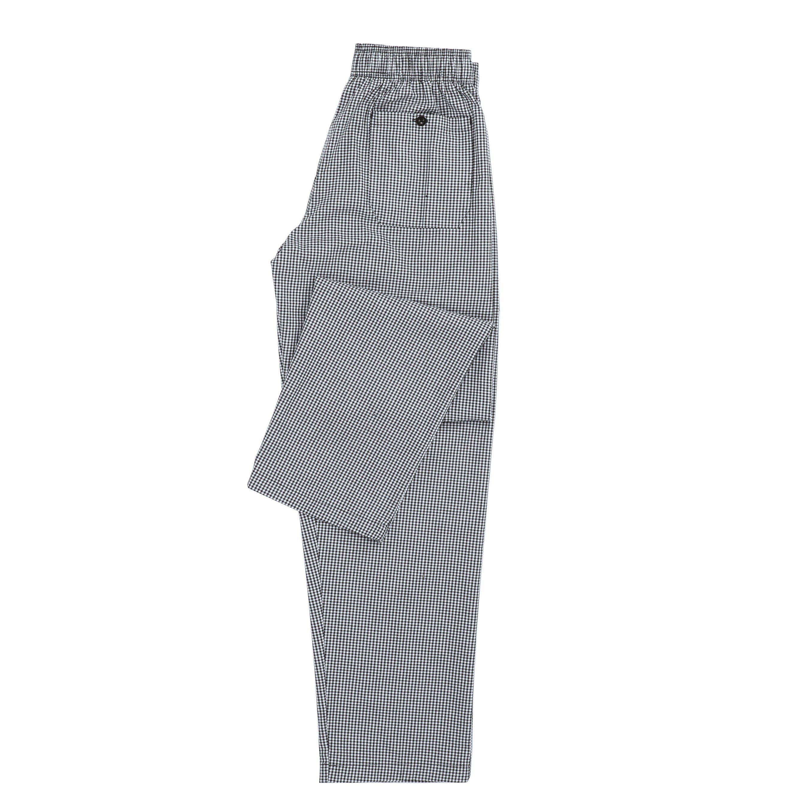 Модель классического кроя, со слегка зауженными от колена брючинами. Имеет эргономичный мягкий пояс на резинке; объем пояса регулируется завязкой-шнурком. От оригинального фасона багги эта модель унаследовала только свободное прилегание; посадка брюк – стандартная, на талии. Брюки выполнены из технологичной, специализированной для профессиональной одежды ткани, снабжены качественной фурнитурой и, как все изделия Chef Works, отличаются превосходным качеством обработки швов и деталей. Принт на ткани – неброский, но всегда актуальный гленчек: мелкая черно-белая клетка.