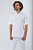 Китель мужской прямого силуэта, со смещенной бортовой застежкой на 6 кнопок, воротник стойка с патой. Рукава втачные короткие. Спинка с кокеткой центральная деталь выполнена из трикотажного полотна Пике. Имеются рельефы спинки и полочки. Левый лацкан отвернут и закреплен. Плечевые швы подчеркнуты погонами, застёгивающимися на кнопку. Отделочная строчка по борту, стойке. Жаккардовая эмблема и размерный ярлык, расположены по центру горловины, лента с составом сырья и символами по уходу в боковом шве.