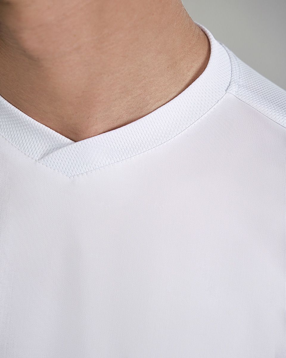 Трикотажная ложная сетка на спинке исключает перегрев, а высокая степень эластичности дарит комфорт и свободу движений при интенсивной работе. Эта легкая, но при этом прочная ткань обеспечивает беспрепятственный доступ воздуха, тянется, отлично сохраняет форму, проста в уходе и не требует глажения.
