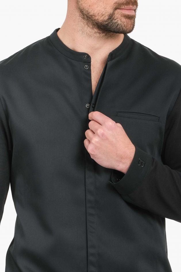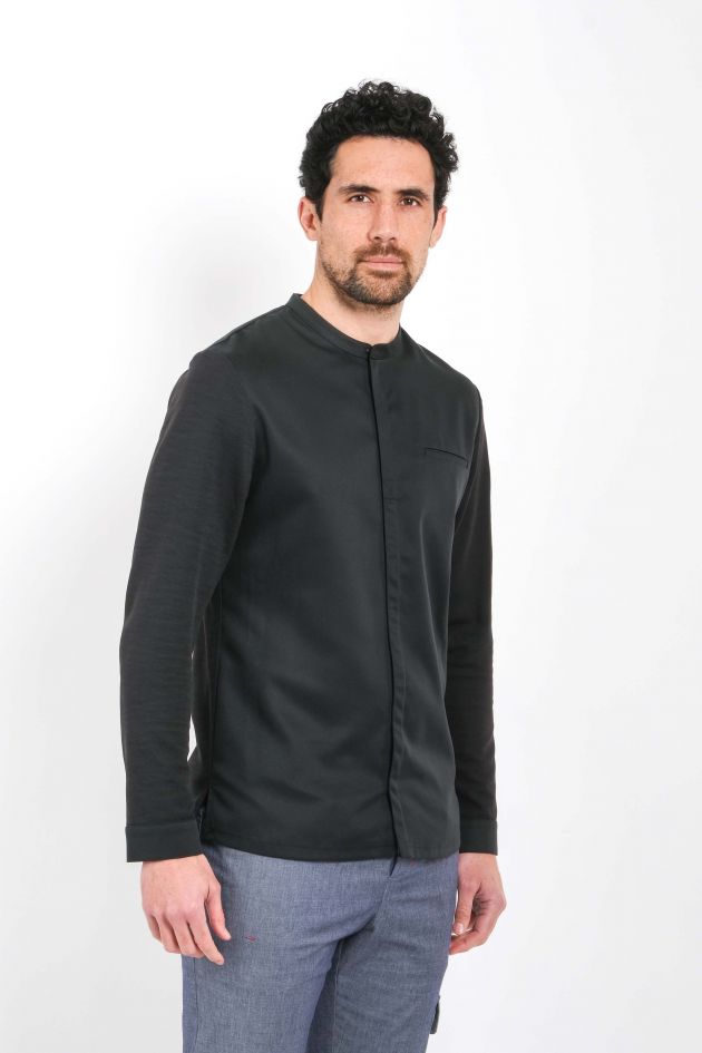 Строгий приталенный жакет шеф-повара с низким воротом-стойкой и длинным рукавом. Застёжка спереди, кнопки скрыты под планкой. Слева расположен нагрудный карман в рамку, а на левом рукаве - кармашек для ручки или градусника. ITHURRIA - очень лёгкая и комфортная модель. Рукава и спинка выполнены из натуральной дышащей материи. Сзади под кокеткой есть горизонтальные прорези, которые обеспечивают дополнительную прохладу и свежесть даже в самые жаркие дни.
