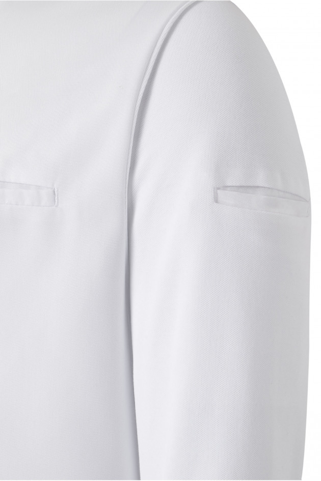 Строгий приталенный жакет шеф-повара с низким воротом-стойкой и длинным рукавом. Застёжка спереди, кнопки скрыты под планкой. Слева расположен нагрудный карман в рамку, а на левом рукаве - кармашек для ручки или градусника. ITHURRIA - очень лёгкая и комфортная модель. Рукава и спинка выполнены из натуральной дышащей материи. Сзади под кокеткой есть горизонтальные прорези, которые обеспечивают дополнительную прохладу и свежесть даже в самые жаркие дни.