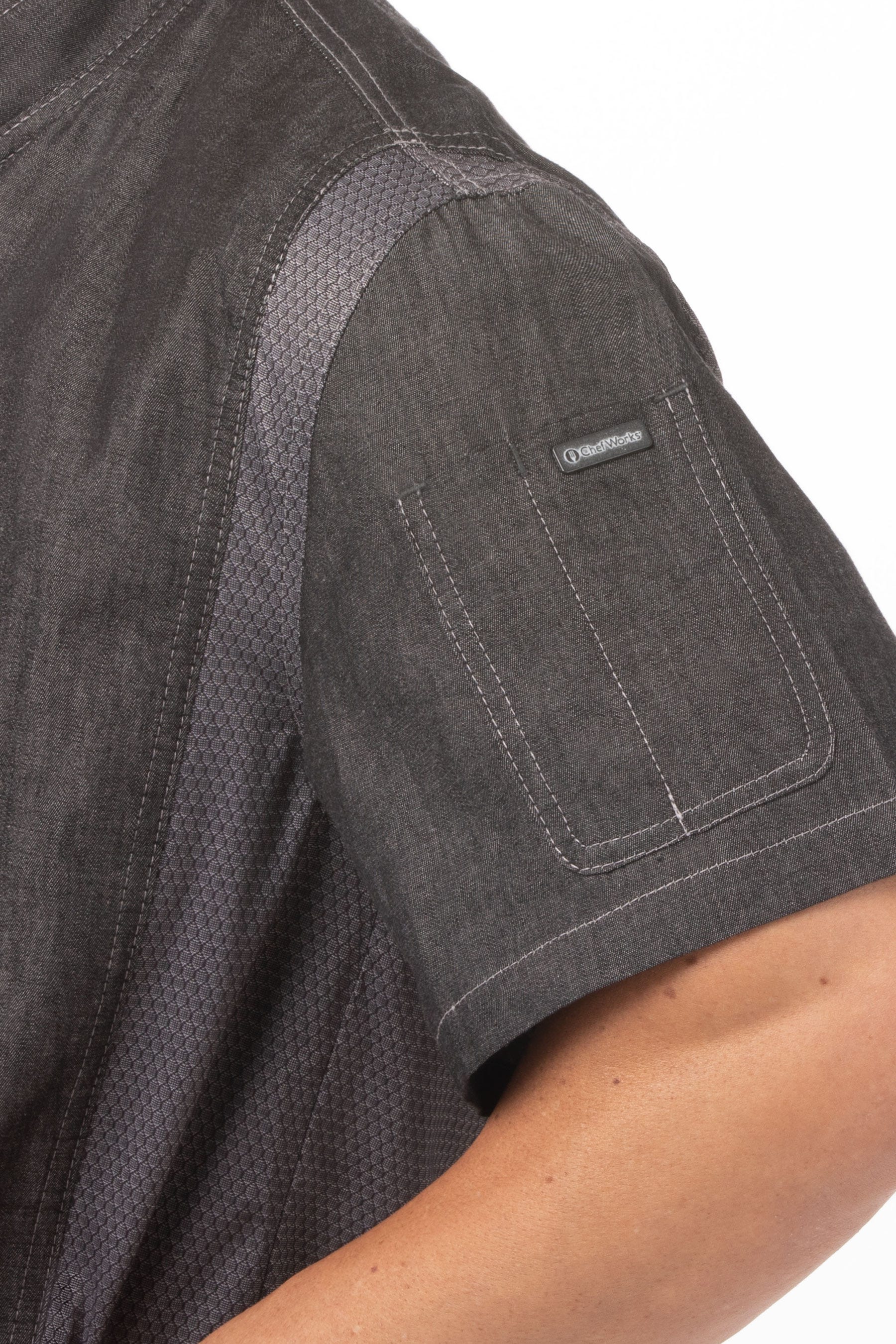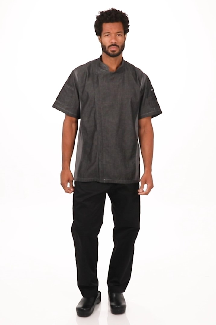 Прогуляться по Деланси-стрит на Манхэттене нас приглашает модель Delancey из коллекции городских образов Chef Works. Дизайнеры поработали над ней на отлично – контрастирующие блоки из внешней стороны денима и более светлых стретчевых блоков делают ее стильной и модной; небольшой воротник-стойка и потайная застежка на молнии, прикрытая слегка закругленной планкой, джинсовая отстрочка создают антураж рабочей блузы-ретро. Все линии плавные, мягкие, уверенные - модель очень красива.