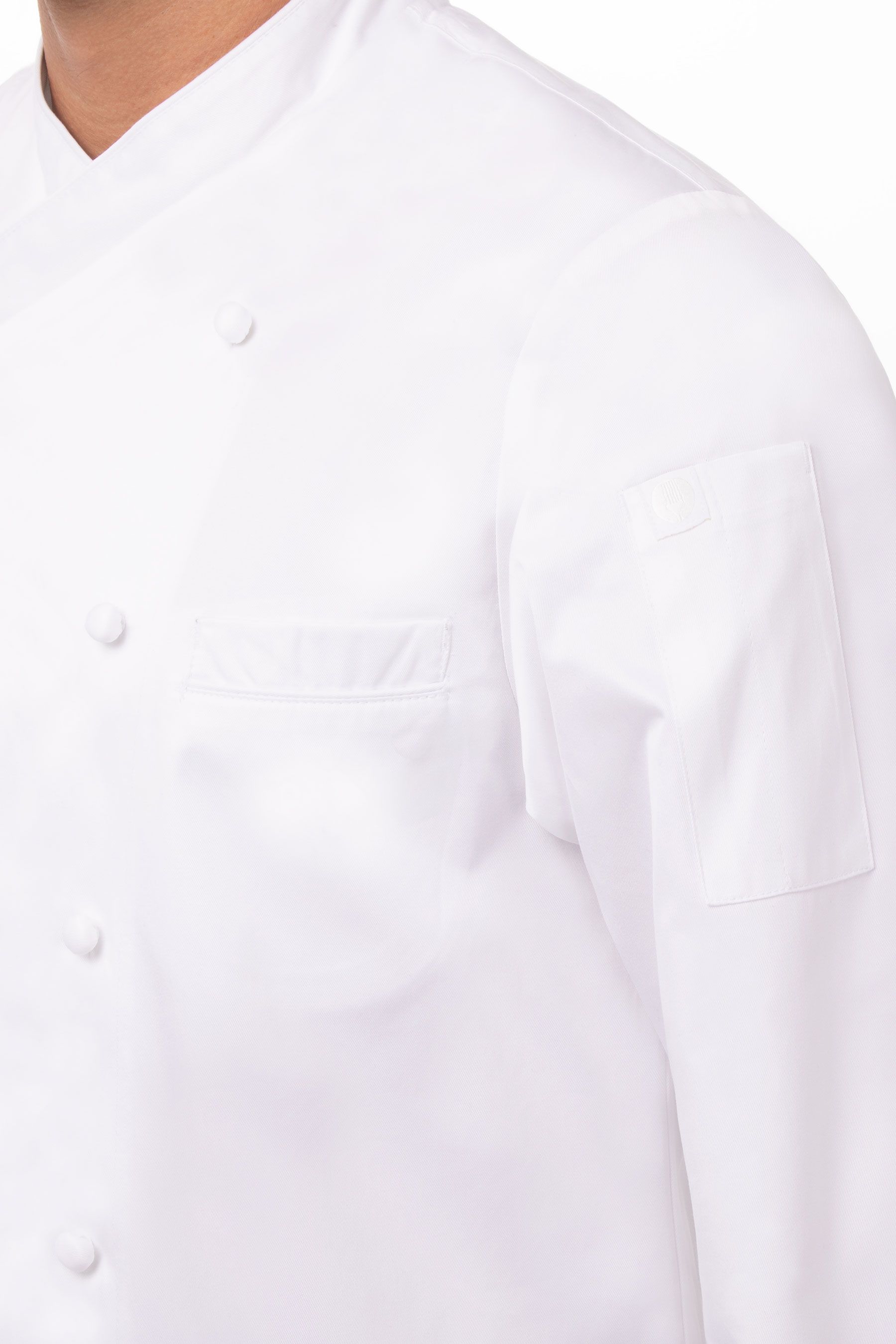 Модель выполнена из плотного чесаного хлопка. Такая ткань приятна к телу, красива и долго сохраняет ухоженный вид – за счет удаления из пряжи пуха и коротких волокон. Благородство ткани уравновешивает лаконизм дизайна этой модели, который дополнительно подчеркивается выбором чистого белого цвета – как основного, так и в отделке. Стильными элементами модели являются французские манжеты под запонки и скрученные вручную пуговицы. Комфортность кителя обусловлена его свободным кроем, технологичными вентиляционными отверстиями и прекрасными гигиеническими свойствами хлопковой ткани.