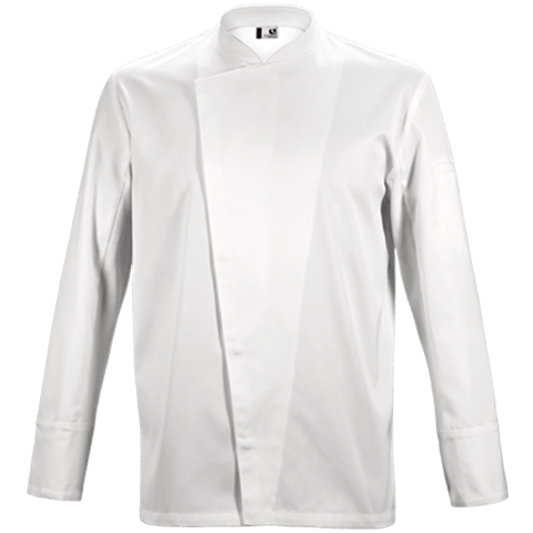 SPOON – классический китель шеф-повара для мужчин. Эта модель воплощает в себе образ традиционного французского жакета с асимметричным запАхом, застёжкой на потайных кнопках и вентиляционными разрезами в боковых швах. Китайский воротничок оформлен оригинально и с шармом – закруглённые уголки к центру горловины сходят на нет.
