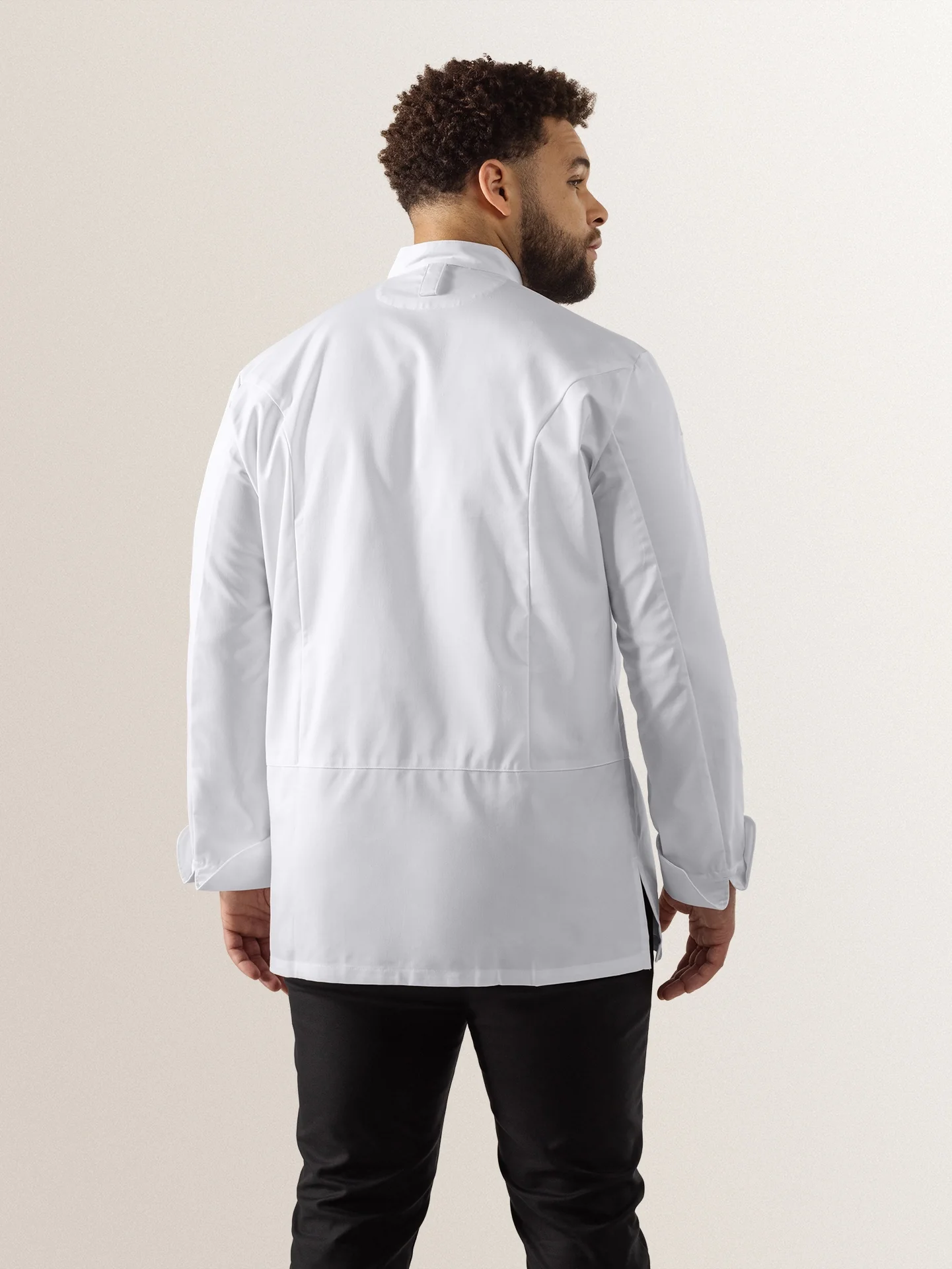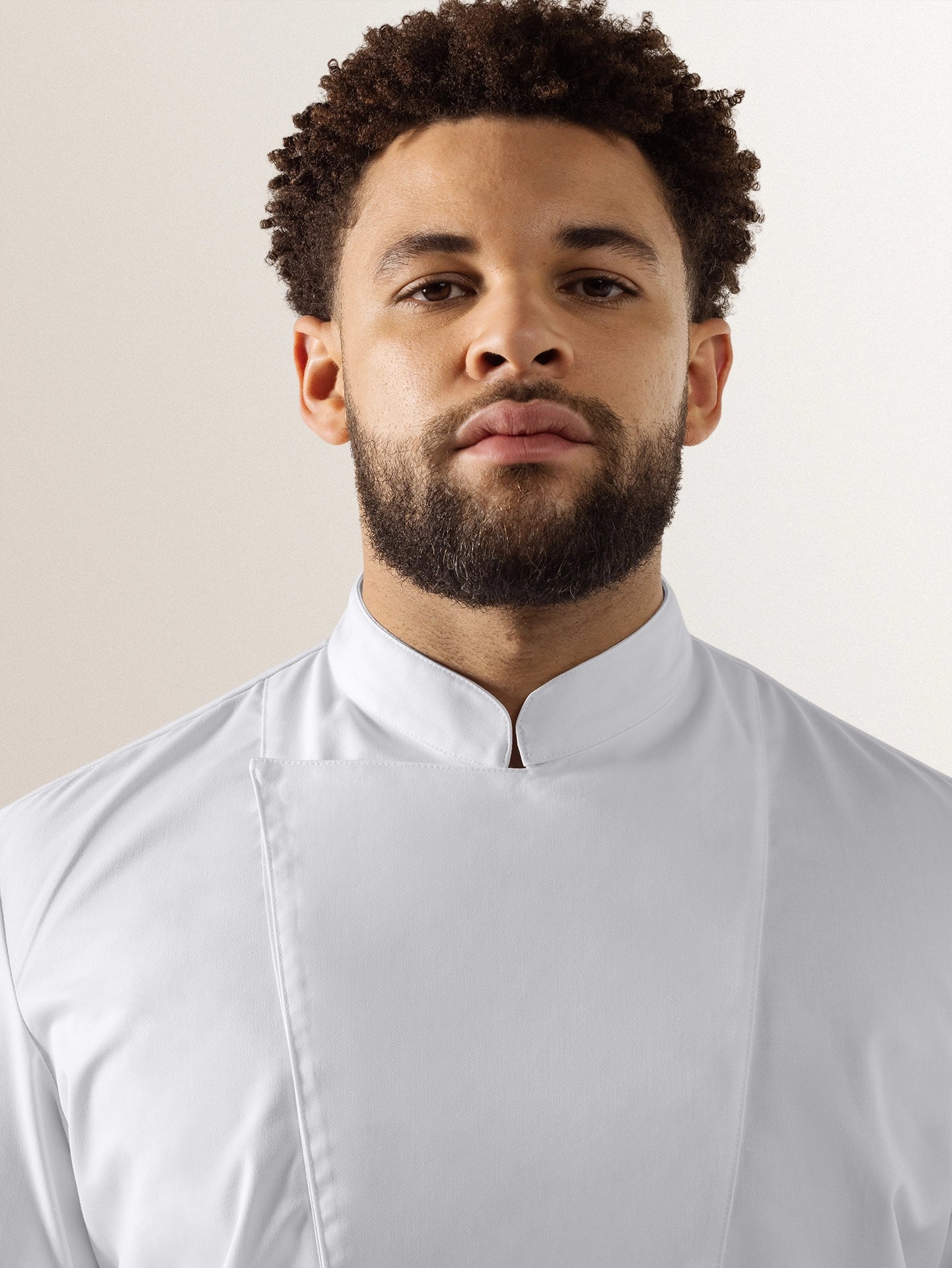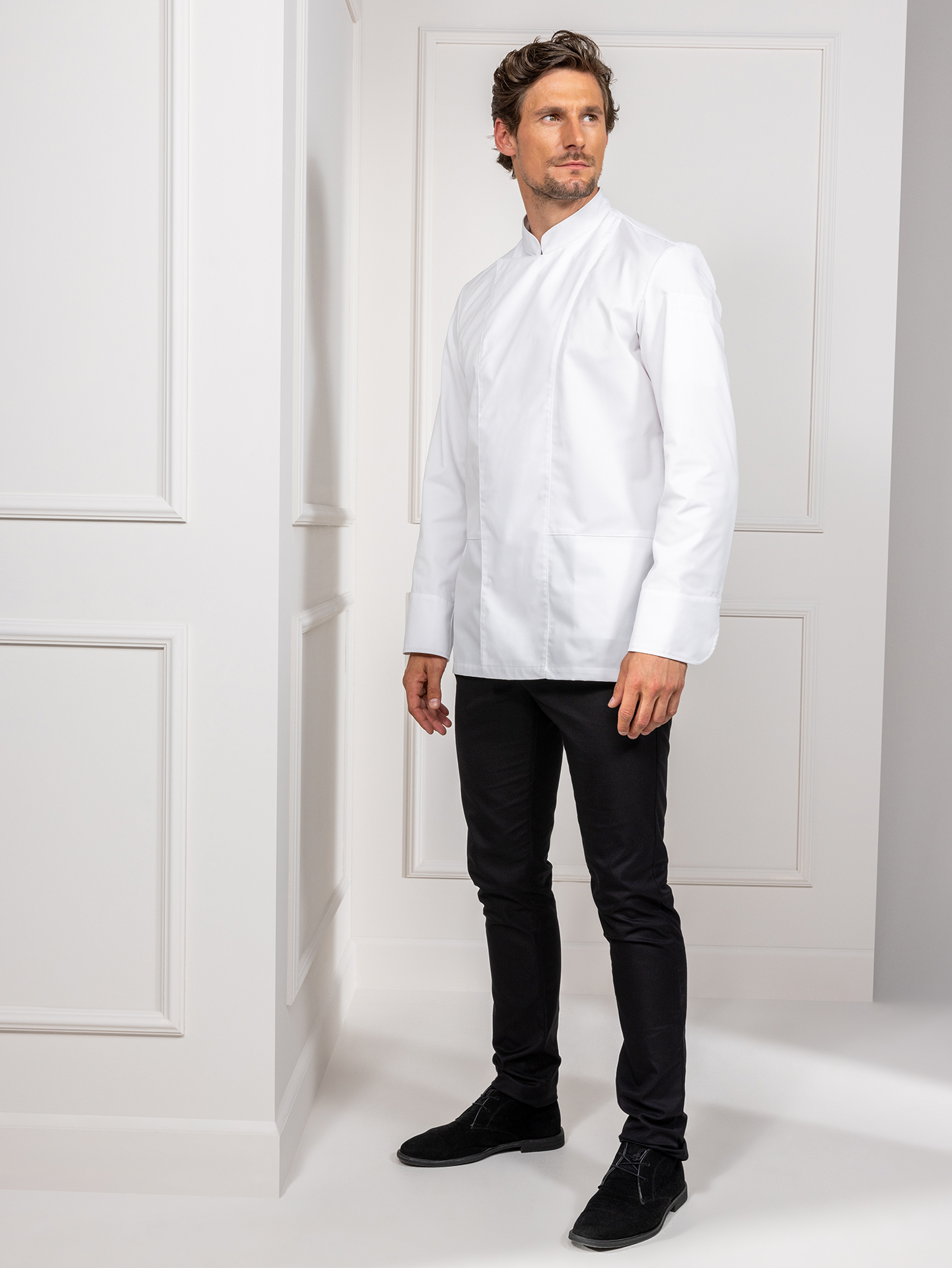 Жакет выполнен из технологичного поликоттона со структурой «механический стретч». Такая ткань прекрасно противостоит деформации: как только натяжение прекращается, она мгновенно восстанавливает первоначальную форму. Другим ее качеством является способность к терморегуляции. В одежде из такого материала не бывает жарко и душно – что особенно важно для спортивной и профессиональной одежды. Материал практичен, очень прочен и долговечен.