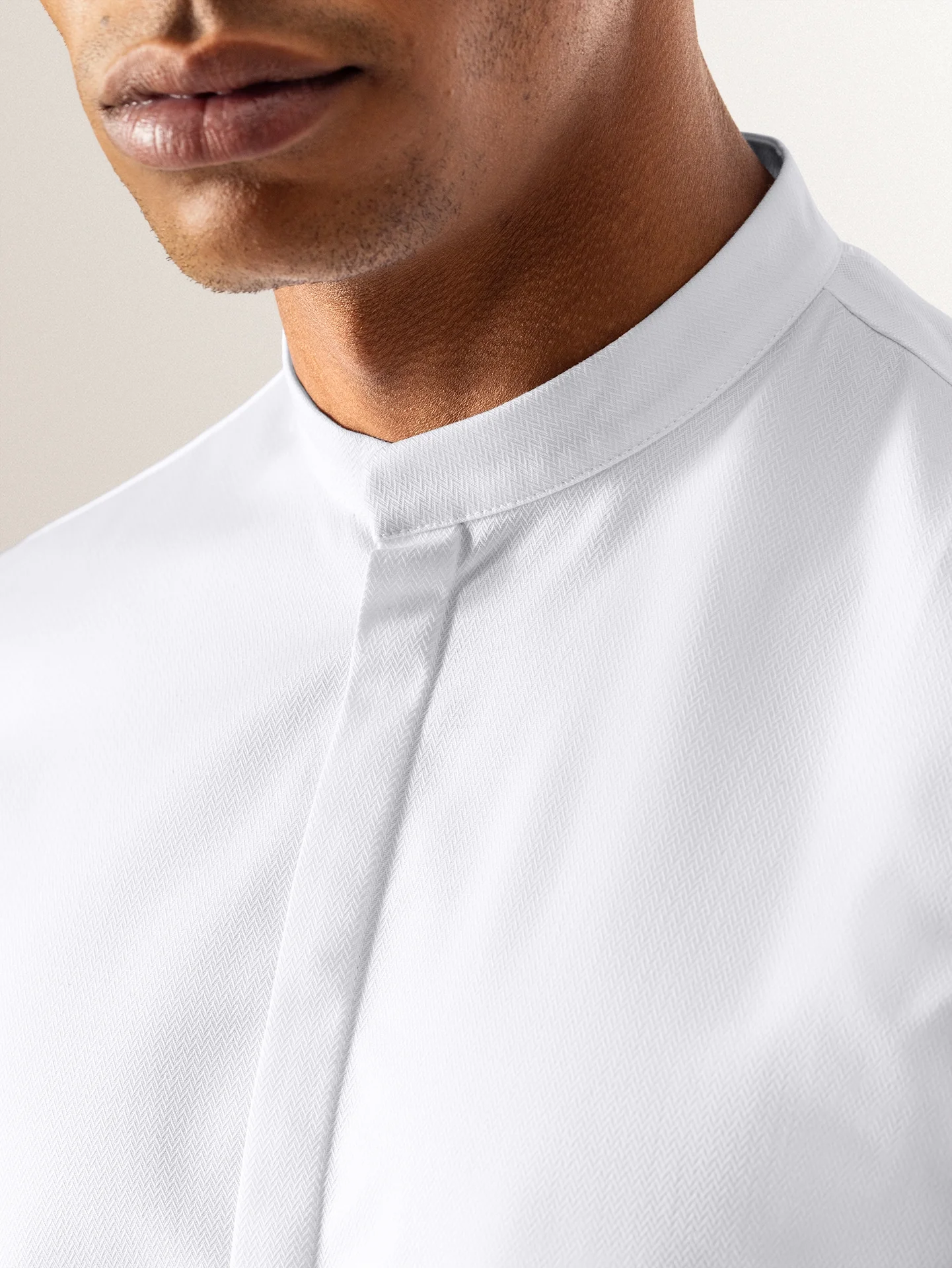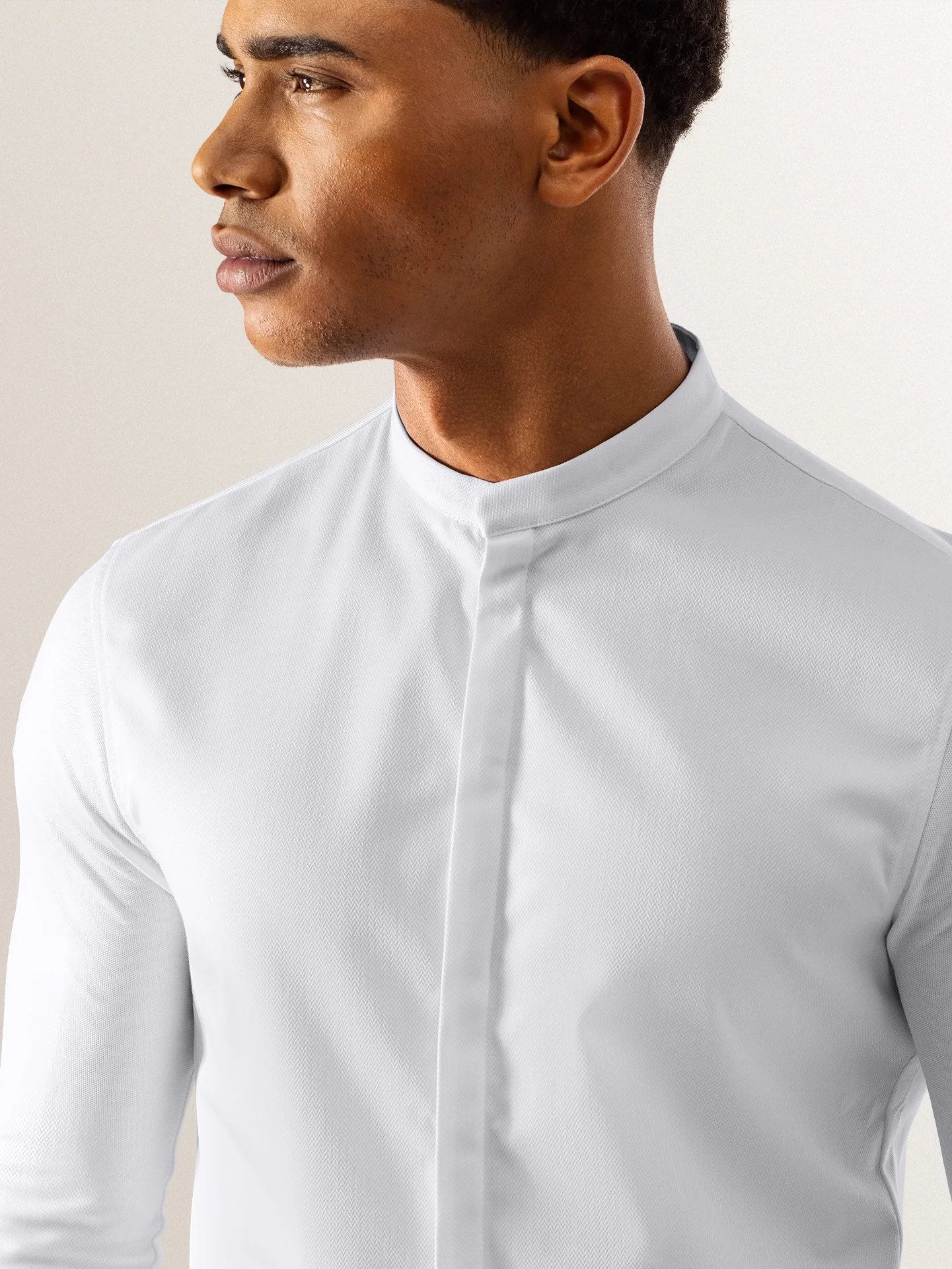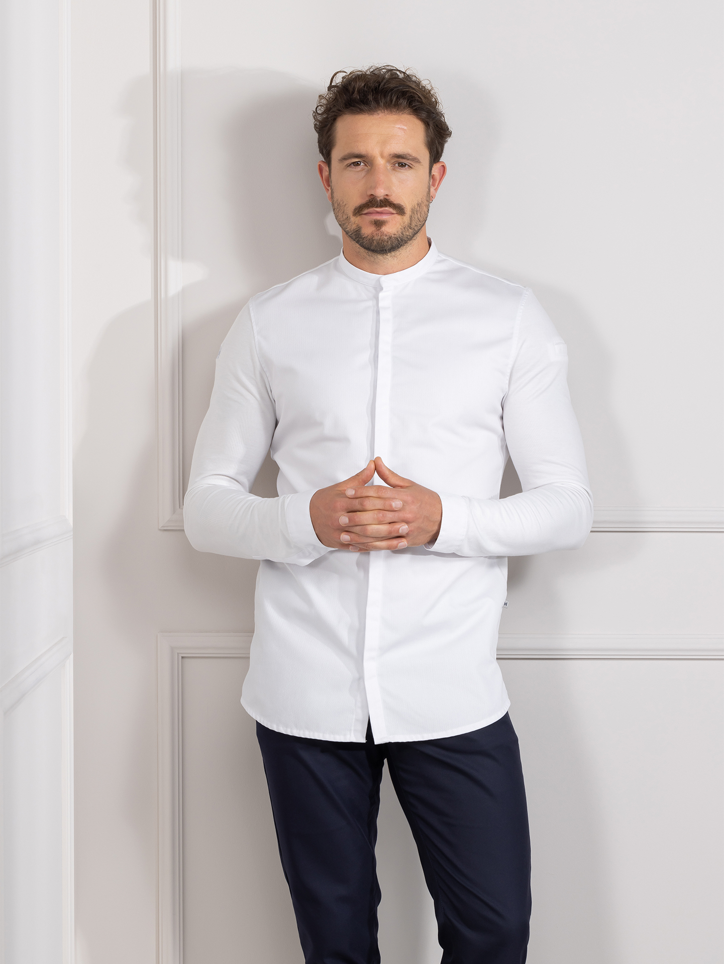 Julien – великолепная модель из серии Green Choice. Этот элегантный мужской жакет имеет точный крой по фигуре и изящный зауженный рукав с манжетами на металлических кнопках. Стройность силуэту придает вертикаль потайной застежки и закругленные нижние срезы. Маленький воротник в стиле «мао» придает образу ориентальный колорит.