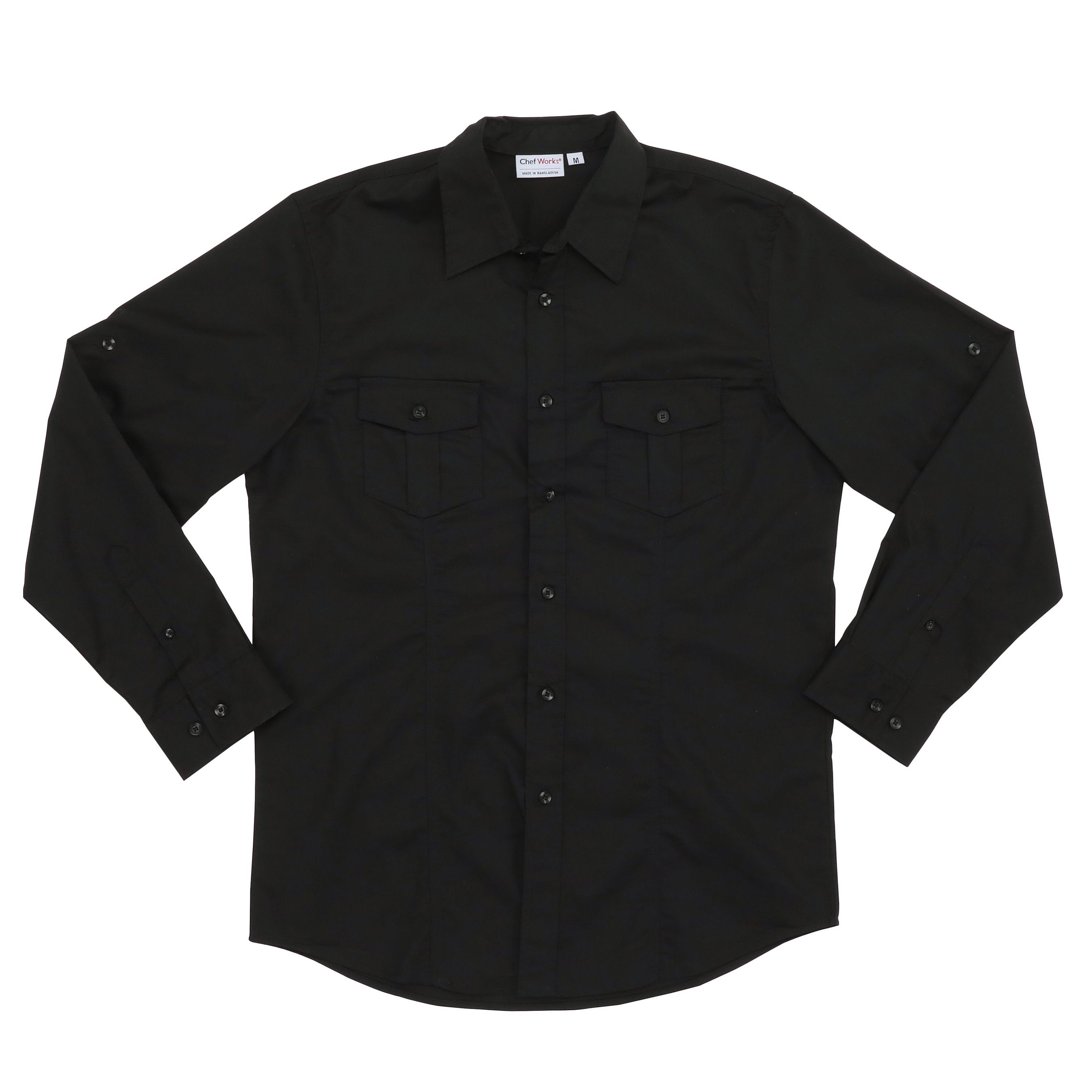 Спортивная рубашка-слим с задней кокеткой и бантовой складкой по спинке из практичного и комфортного материала. Распространенные атрибуты неформального стиля – длинный рукав с отворотом, объемные накладные карманы с клапанами и тройная отстрочка деталей.