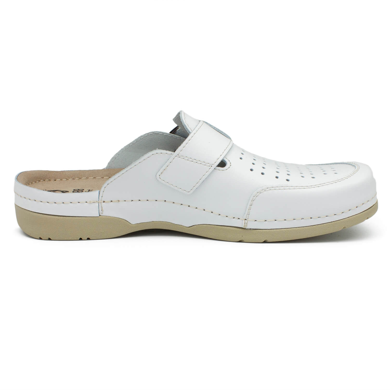 Модель Phlox 350 - это закрытые туфли-сабо с перфорацией в верхней части для дополнительной вентиляции. Регулируемый ремешок с застежкой-пряжкой позволяет подобрать удобную ширину и высоту подъема стопы. Благодаря комфортным V-образным вырезам туфли легко снимать и надевать, и они отлично фиксируются на ноге. Анатомическая форма туфель снижает усталость ног, гелевая прокладка обеспечивает массажный эффект, замшевая внутренняя поверхность прекрасно впитывает влагу.