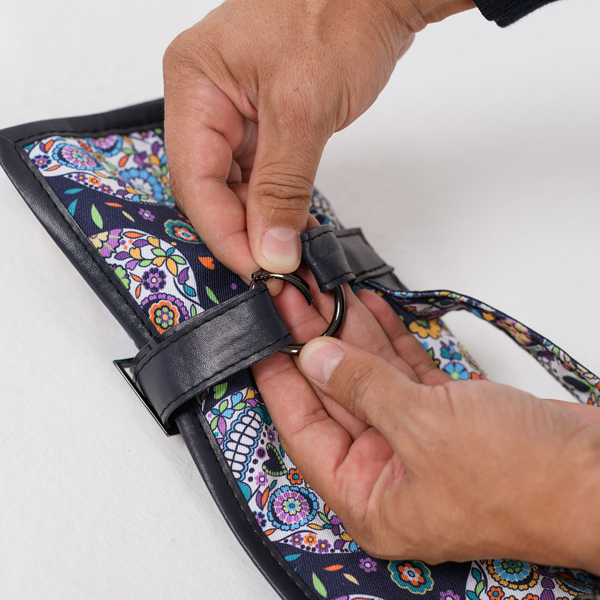 Скрутка для ножей от ультрамодной марки BANDIT - это неоценимая помощь в работе шеф-повара. Удобные отделения позволят носить с собой весь свой арсенал, а натуральный хлопок с небольшим добавлением спандекса лучше всего предохранит сталь от сырости. Ремешки и отделка внешних сторон выполнена из экокожи, мягкой и прочной. Отличительная особенность этой серии — оригинальные принты, подчёркивающие ваш неповторимый стиль.