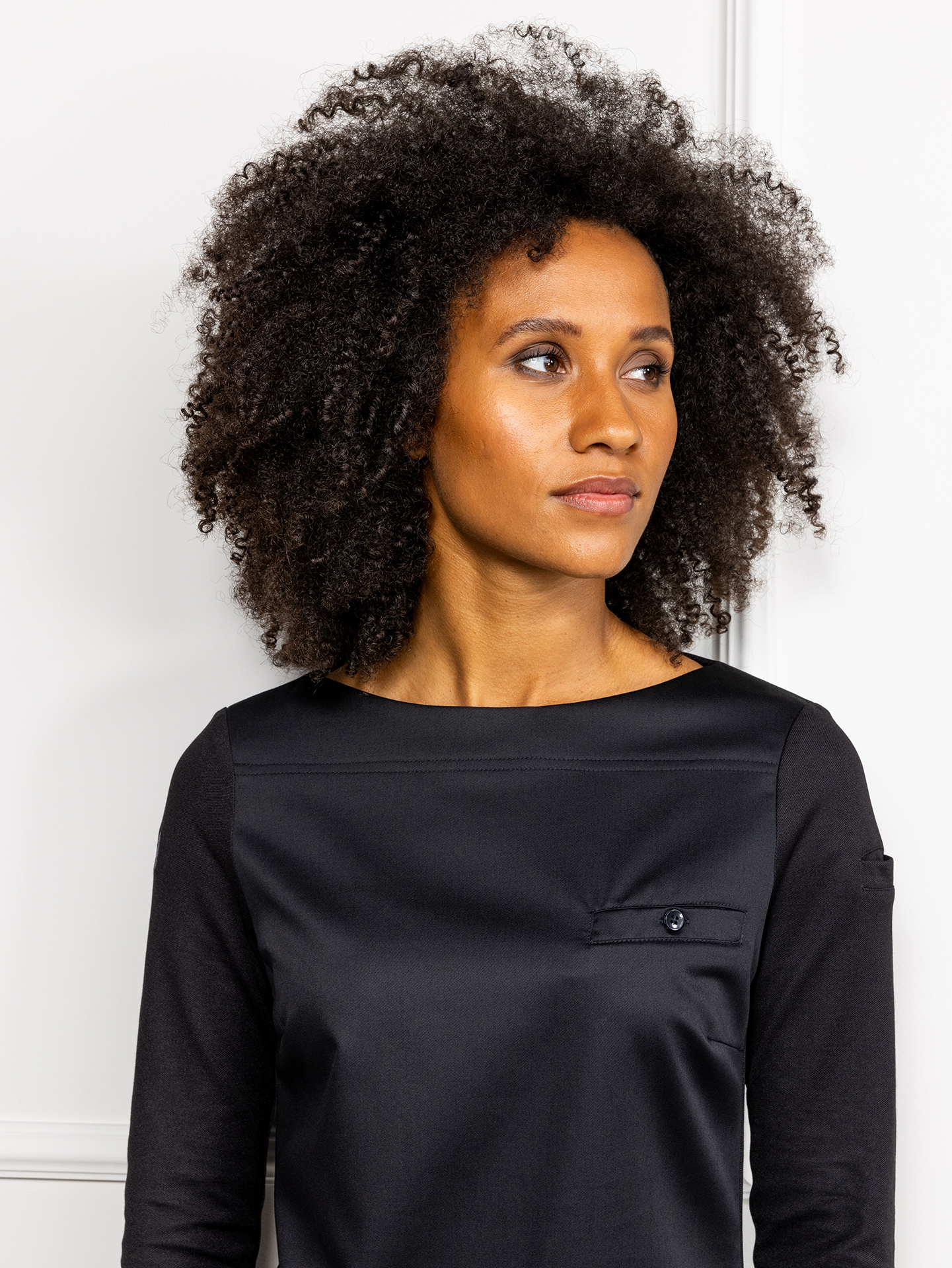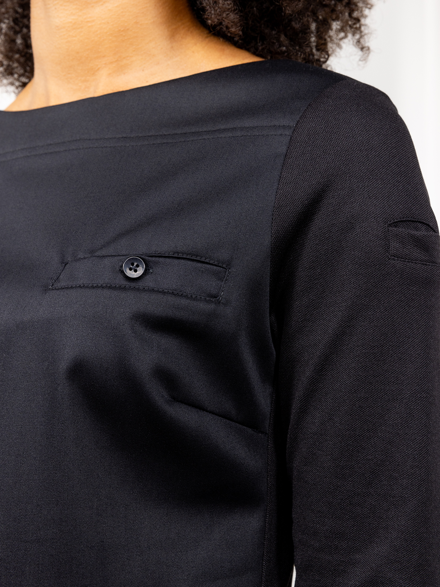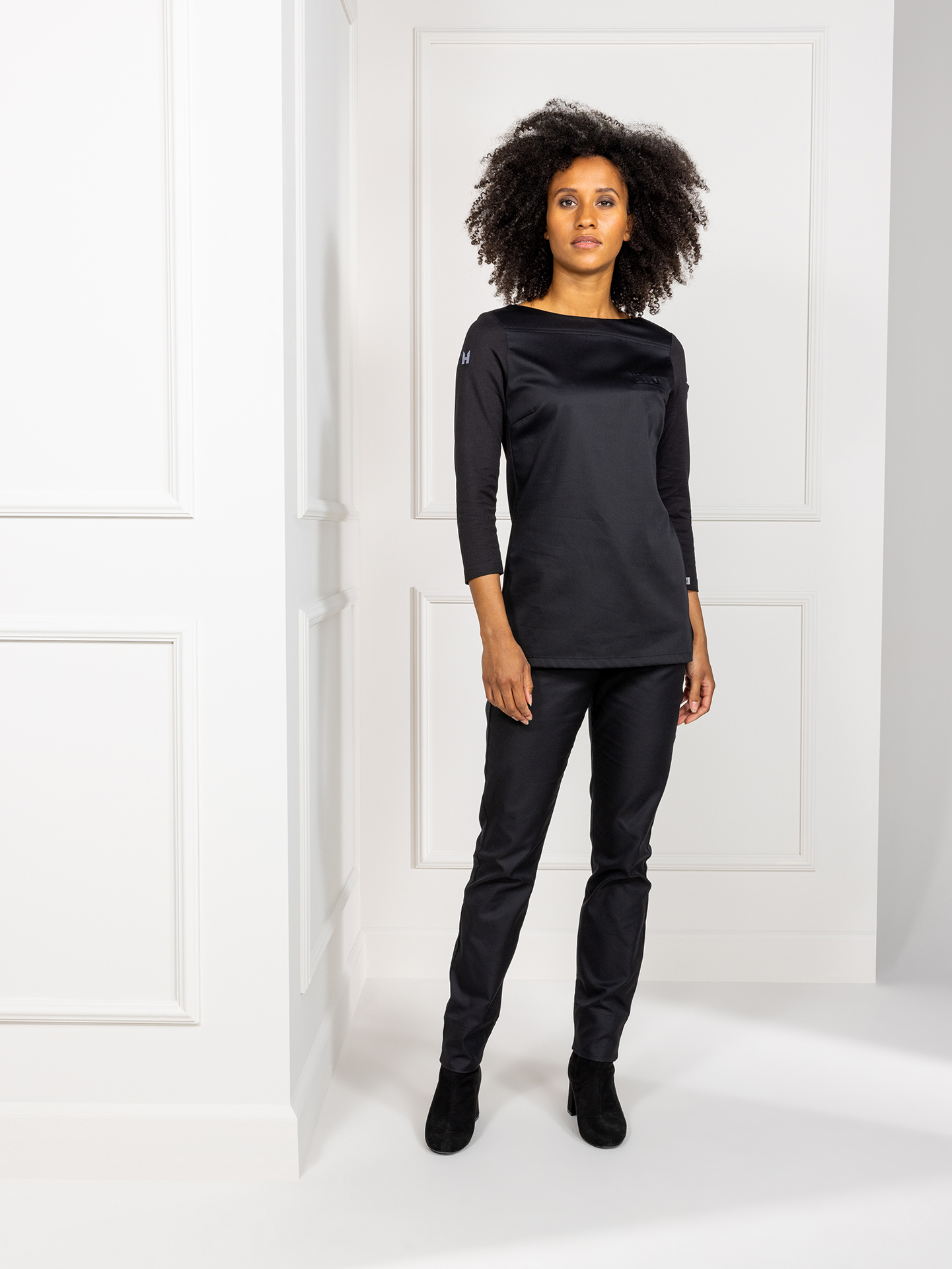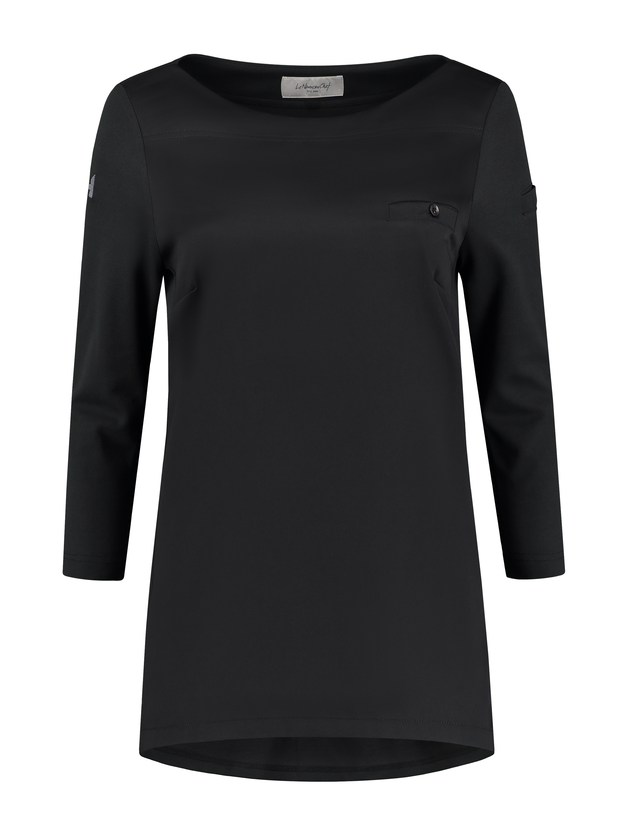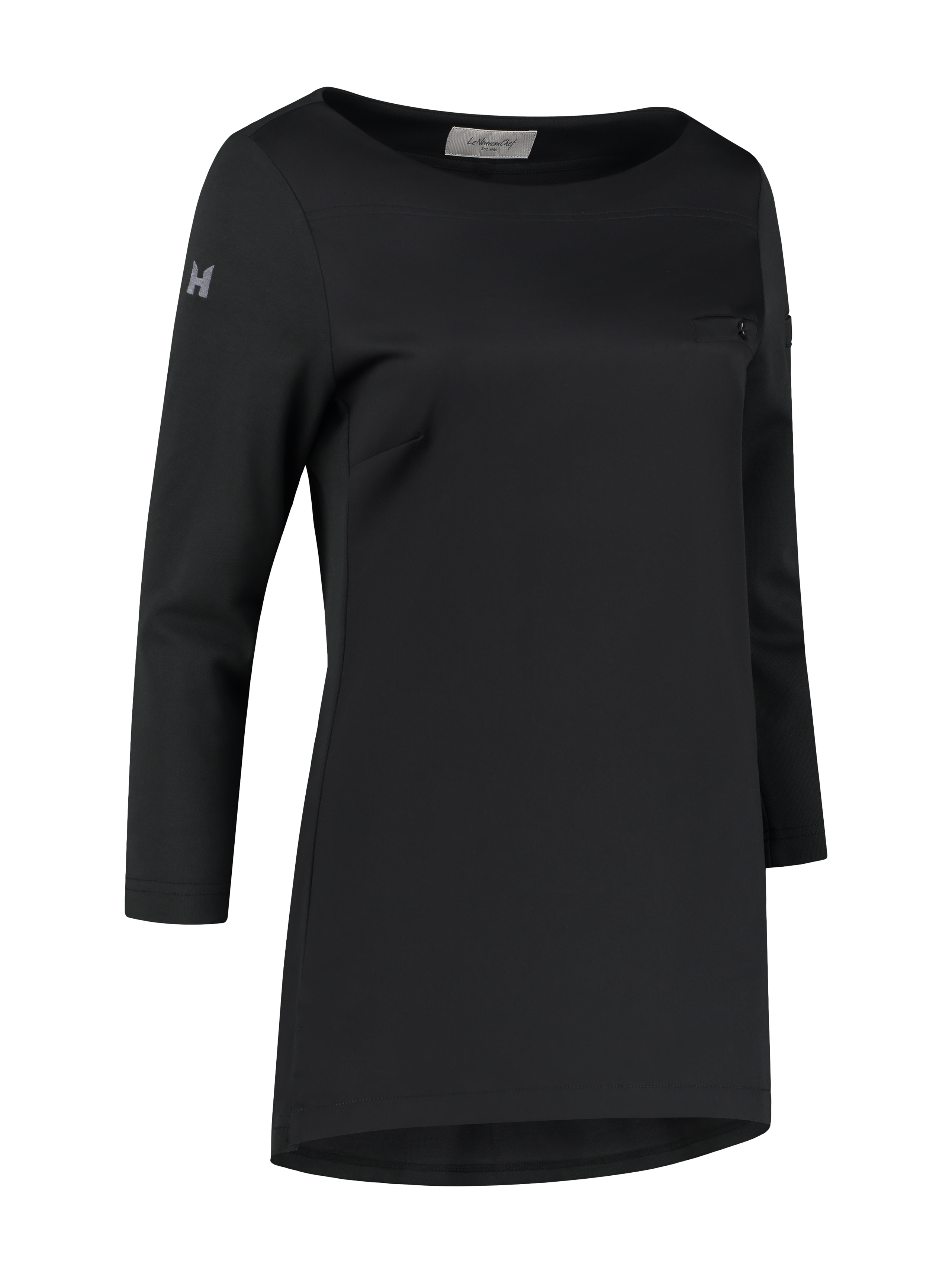 Evy – это стильная и лёгкая туника с вырезом в форме лодочки. Подойдёт как повару, так и сотруднице ресторанного или гостиничного сервиса. Рукав ¾ идеален для работы — он подчеркнёт изящество ваших рук, к тому же, вам не придётся расстёгивать и закатывать манжеты. Врезной нагрудный карман с пуговицей в тон создаёт неброский структурирующий акцент. Подол немного удлинён со стороны спинки. На левом рукавчике есть небольшое отделение для ручки или карандаша.