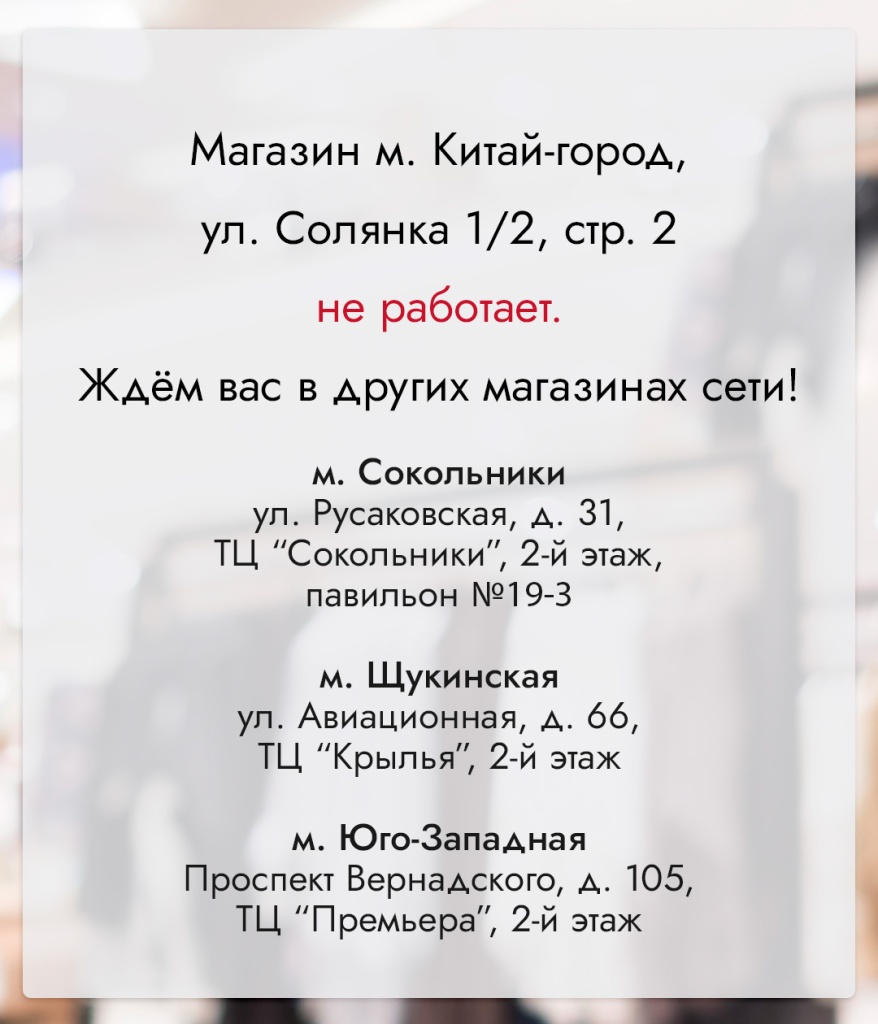 Режим работы розничных магазинов, интернет-магазина и офиса компании